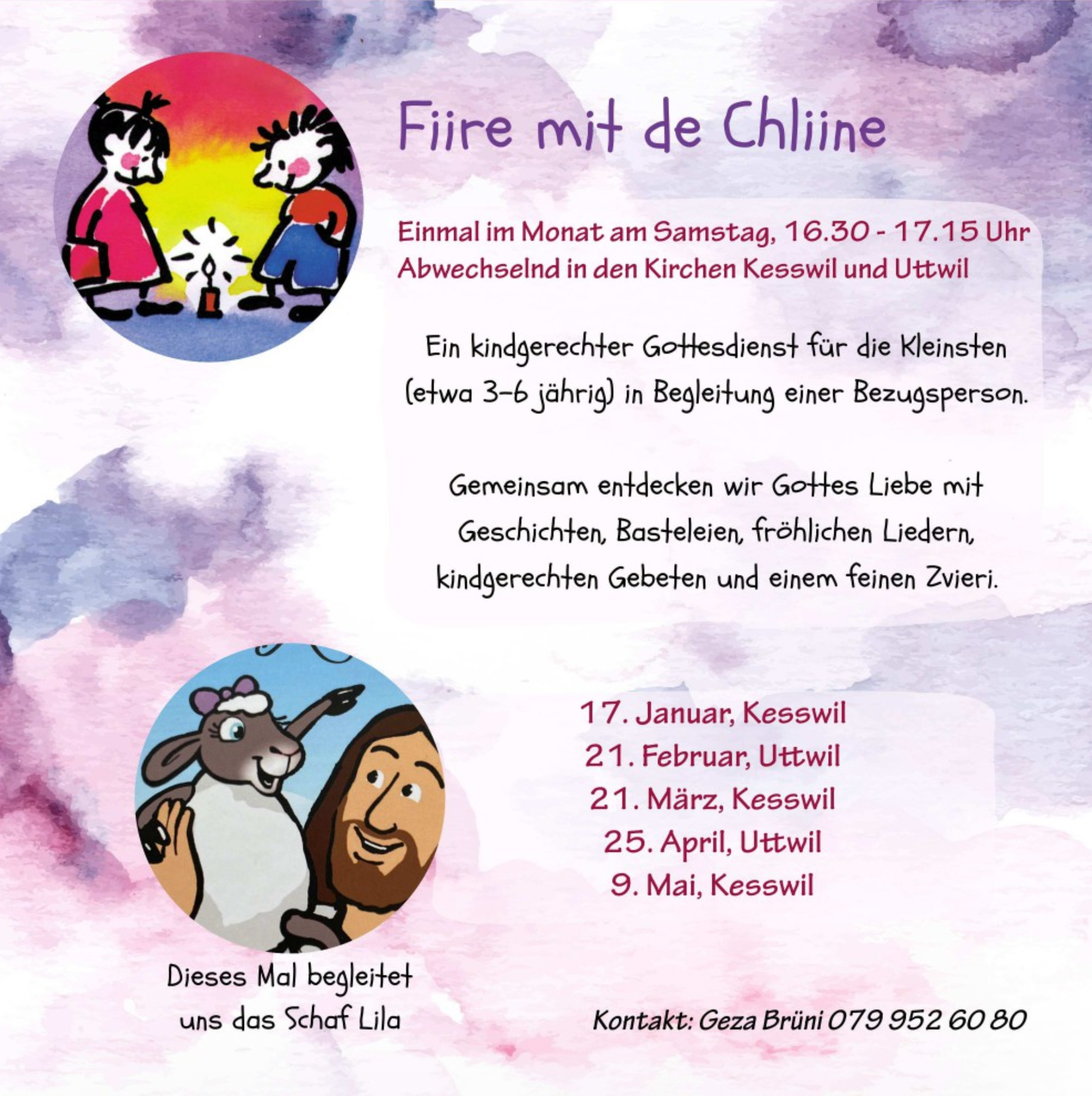 Hörst du gerne spannende Geschichten, singst gerne Lieder und freust dich auf andere Kinder? Dann bist du richtig im „Fiire mit de Chliine“ (Gschichtehöck). Denn in diesen 45 Minuten gehört die Kirche und deren Umgebung den Kindern. Du bist herzlich zum Entdecken eingeladen!