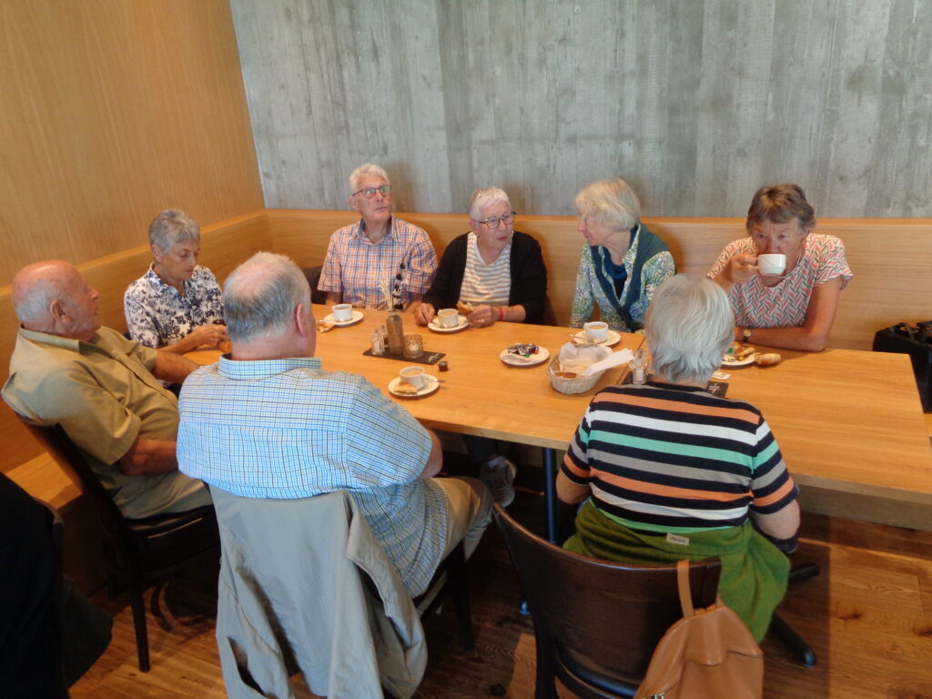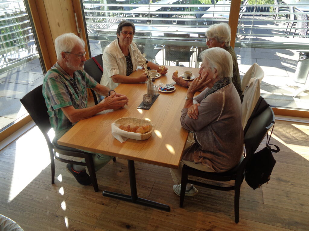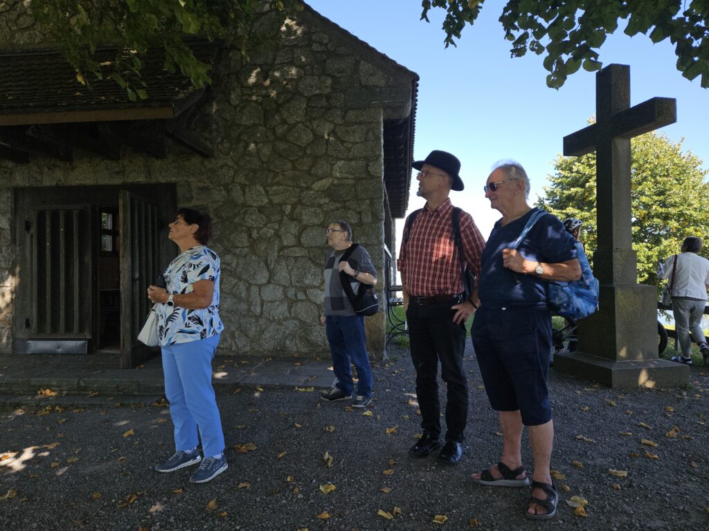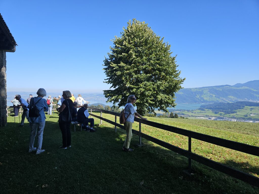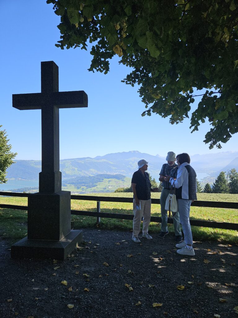 Es ging zu der schönen Kapelle Michaelskreuz oberhalb des Zugersees. Nicht nur die Kapelle mit ihrer wundervollen, schlichten aber stimmungsvollen Atmosphäre war ein Erlebnis, auch der herrliche Ausblick von dort über den Zugersee weit ins Land hinein. Man konnte sich gar nicht sattsehen. Doch ging es dann weiter mit der Reise, die noch einen Stadtbummel in Zug vorsah, wo bei wundervollem Sonnenwetter die Promenade am See, die Altstadt und sich auch ein Stück Zuger Kirschtorte genossen wurden.